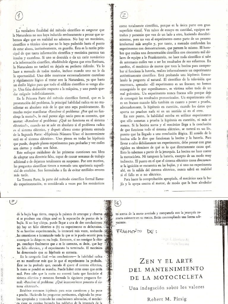 WebZen y el arte del mantenimiento de la motocicleta (Spanish Edition) 1,912 570 499KB. Spanish Year 2018. Report DMCA / Copyright. DOWNLOAD EPUB FILE. Author /. Web"El zen y el arte del mantenimiento de la motocicleta" es una popular novela de Robert Pirsig. Ha sido calificado como "el libro de filosofía más difundido. WebMientras recorren las carreteras de Estados Unidos, el arte del mantenimiento de la motocicleta pasa a ser una bella metáfora de cómo conjugar el frío y racional mundo. WebSinopsis de ZEN Y EL ARTE DEL MANTENIMIENTO DE LA MOTOCICLETA. Fedro emprende un viaje en moto con Chris, su hijo de once años. Mientras recorren las. WebZen y el Arte del Mantenimiento de la Motocicleta Guión 1. 2. 3. 4. 5. 6. 7. 1. EL SESO Me gusta la palabra «seso» porque es tan hogareña y está tan abandonada, y porque. WebZen y el arte del mantenimiento de la motocicleta es un libro inclasificable, que engañan por su título [no es propiamente un tratado de Budismo, aunque tiene cierta.